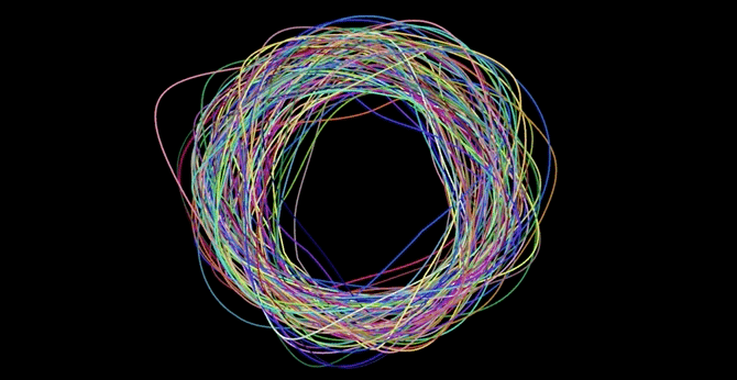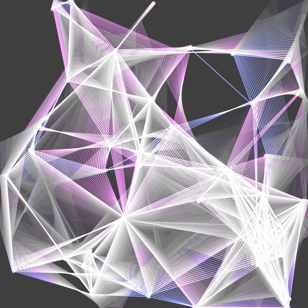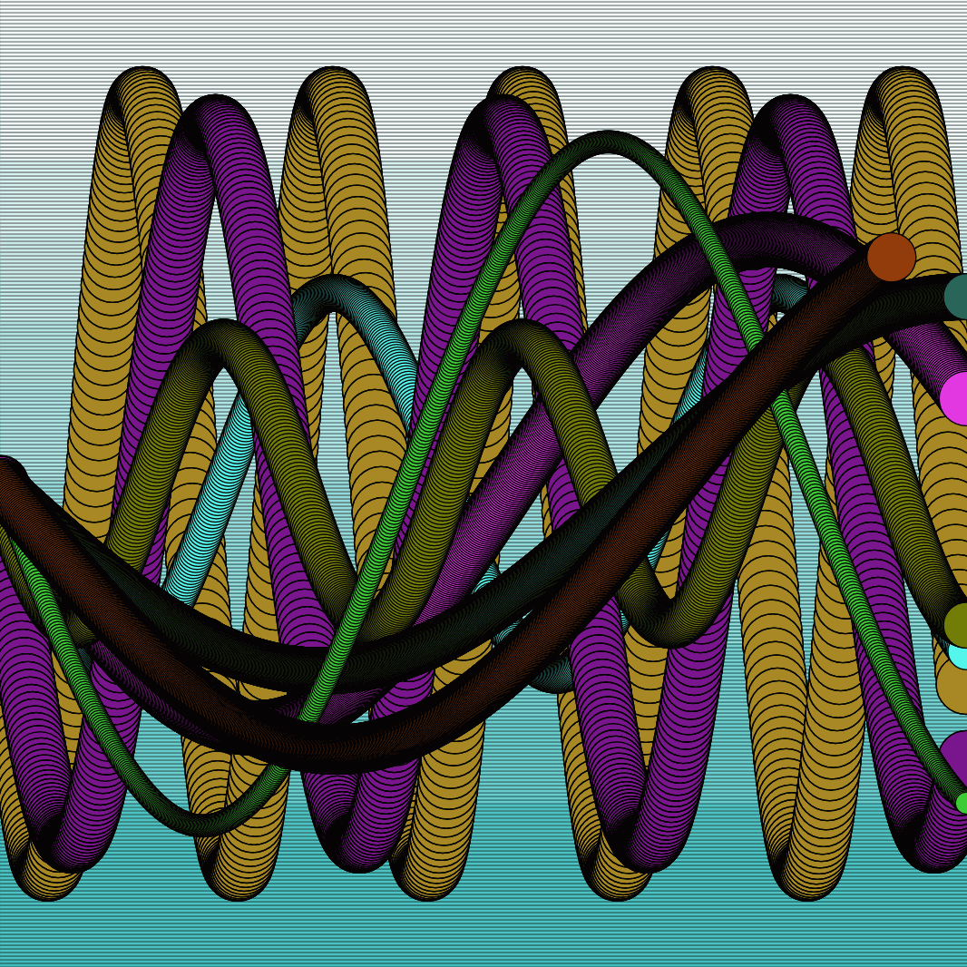 1. Consider re-prompting to extract movement that is more constrained / chaotic / oscillatory / recursive. What if you combine multiple code examples together, even those that they appear very different? How far can you go into creating code mutations?